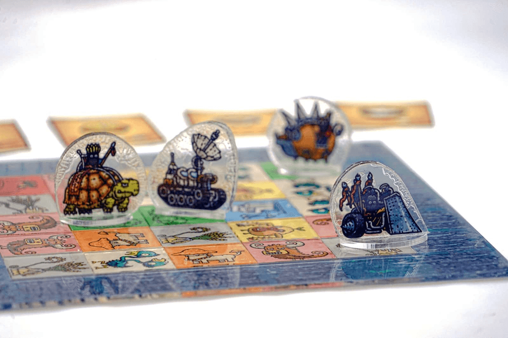 Resin, silicone, cardboard, laser cut, spray paint, acrylic sheet