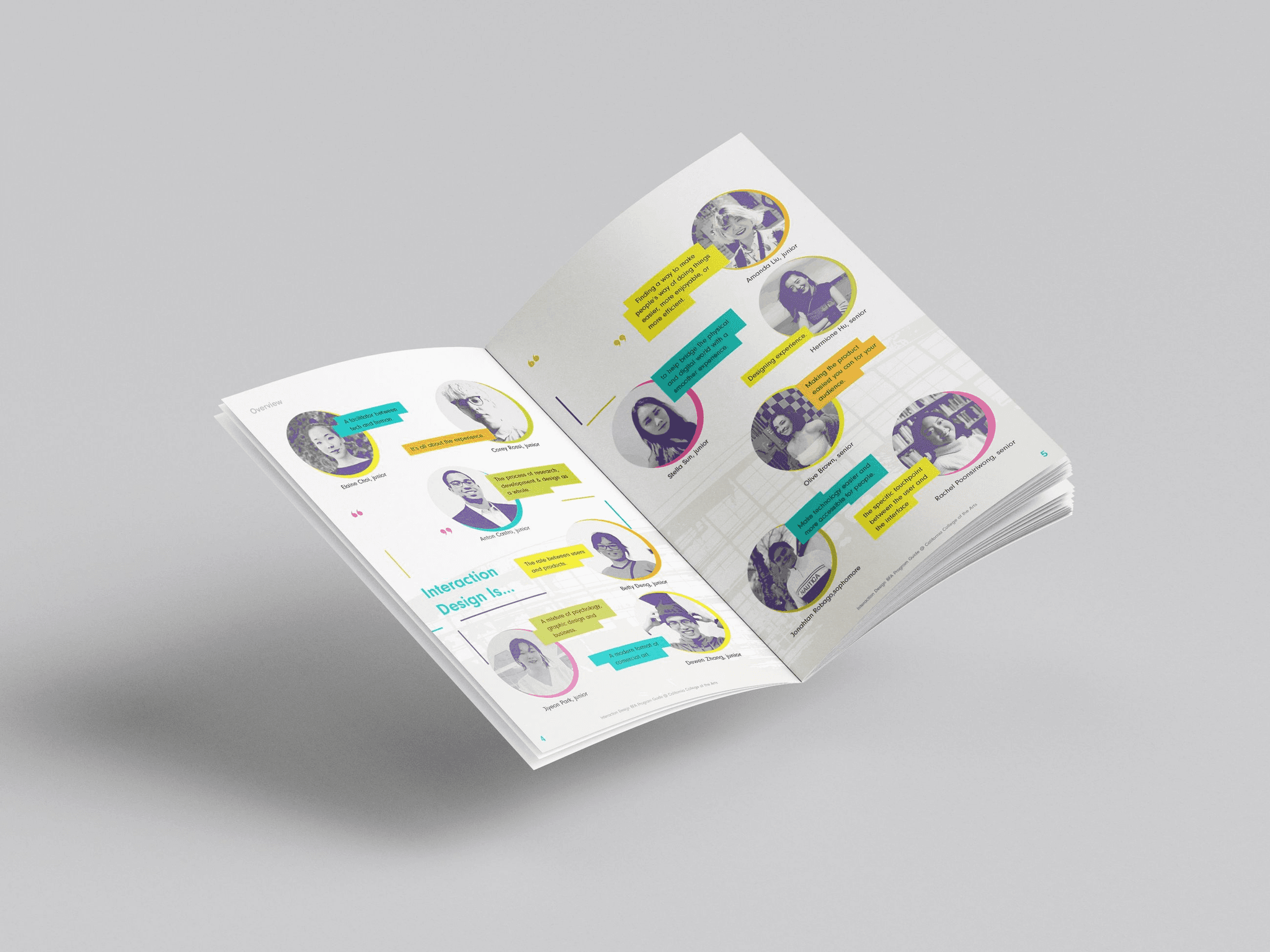 The Program Guide aims to showcase student work while capturing the distinctive spirit of CCA’s Interaction Design program. My goal is to create a compelling visual experience that invites readers to explore the program more deeply.