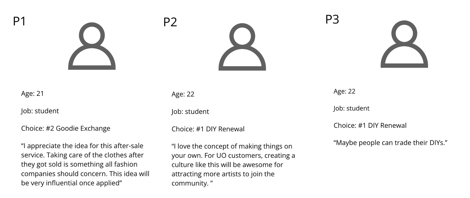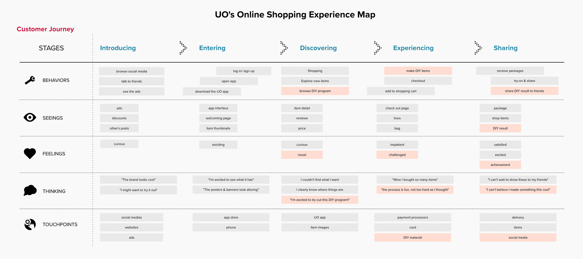 Based on UO's customer segment, I identified three core keywords to guide the touchpoint design moving forward.