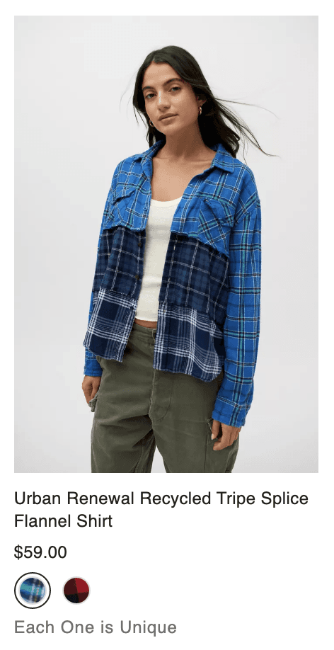 Urban Renewal is Urban Outfitters’ sustainability program focused on repurposing and reselling recycled vintage pieces. Each item is handmade and one-of-a-kind, promoting a unique, sustainable & creative mindset.