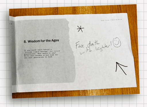 A physical booklet is the most accessible and comforting way for someone nearing the end of life to reflect and document their legacy.