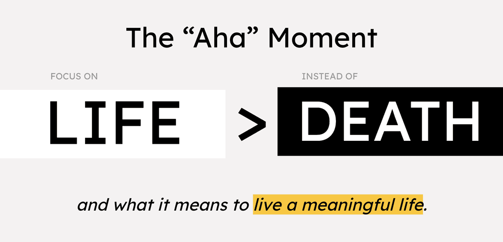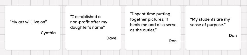 Based on our new discovery, we decide to shift our focus from helping people cope with death, to what it means to live a meaningful life. Here's our new problem statement:
