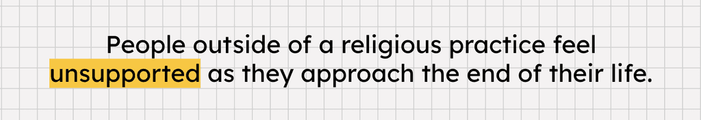 As religious people may already have answers to life's big questions (or at least a strong tendency), our team wants to focus on people outside of a religious practice, thus our V0 hypothesis: