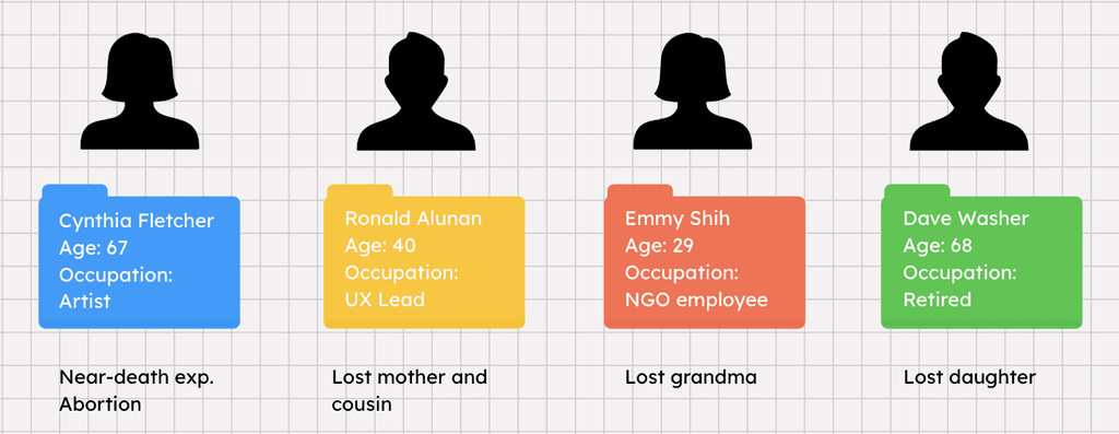 We recruited four people within our personal network, all connected by one thing: a personal encounter with death—either through loss or near-death experience.