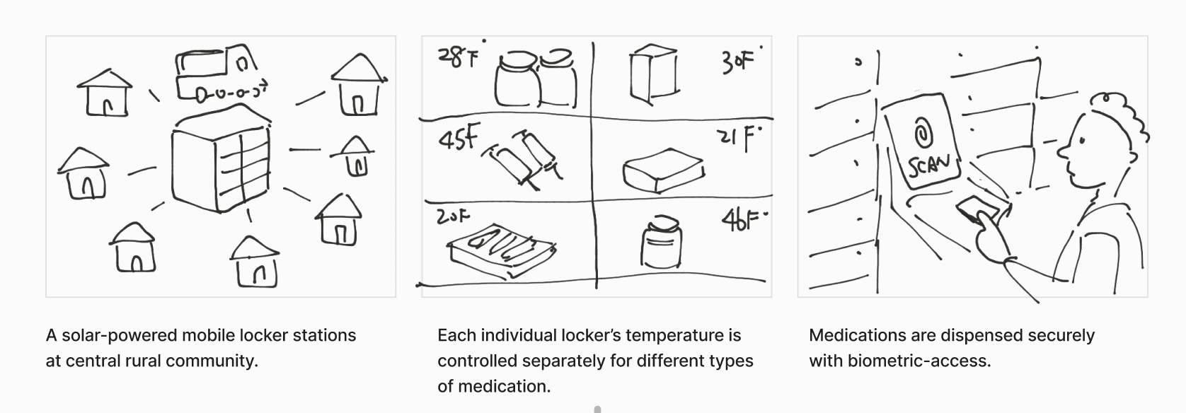 A storage-hub solution to bridge last-mile drug delivery gaps in rural pharmacy deserts.