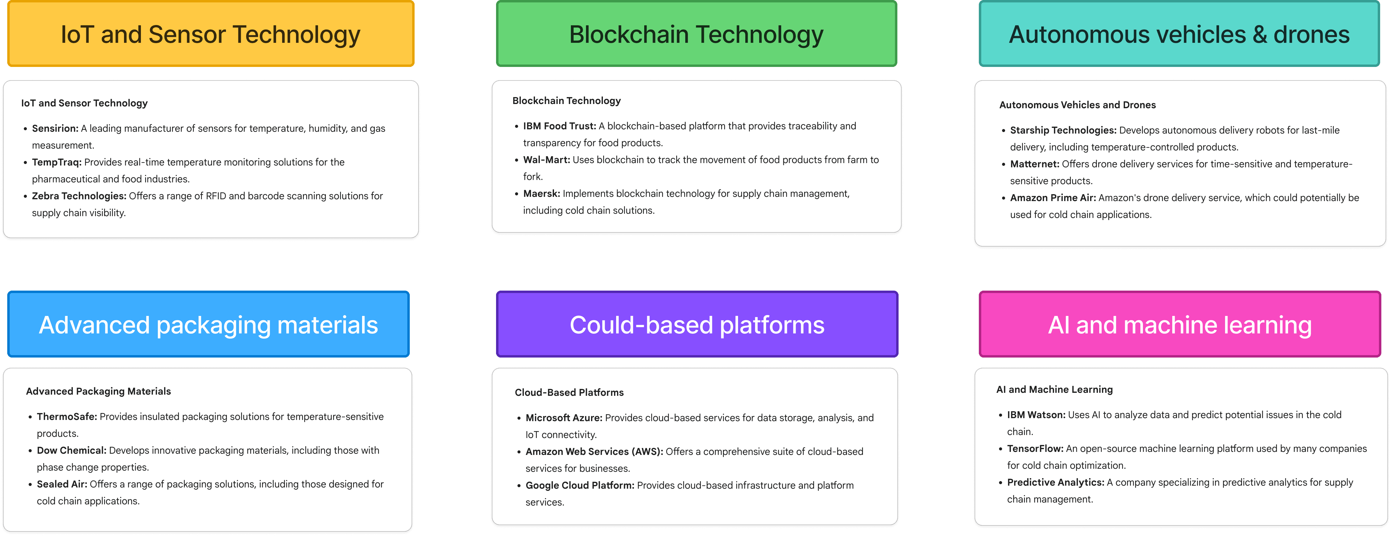 We looked at the current technologies evolving around cold chain from 6 perspectives: